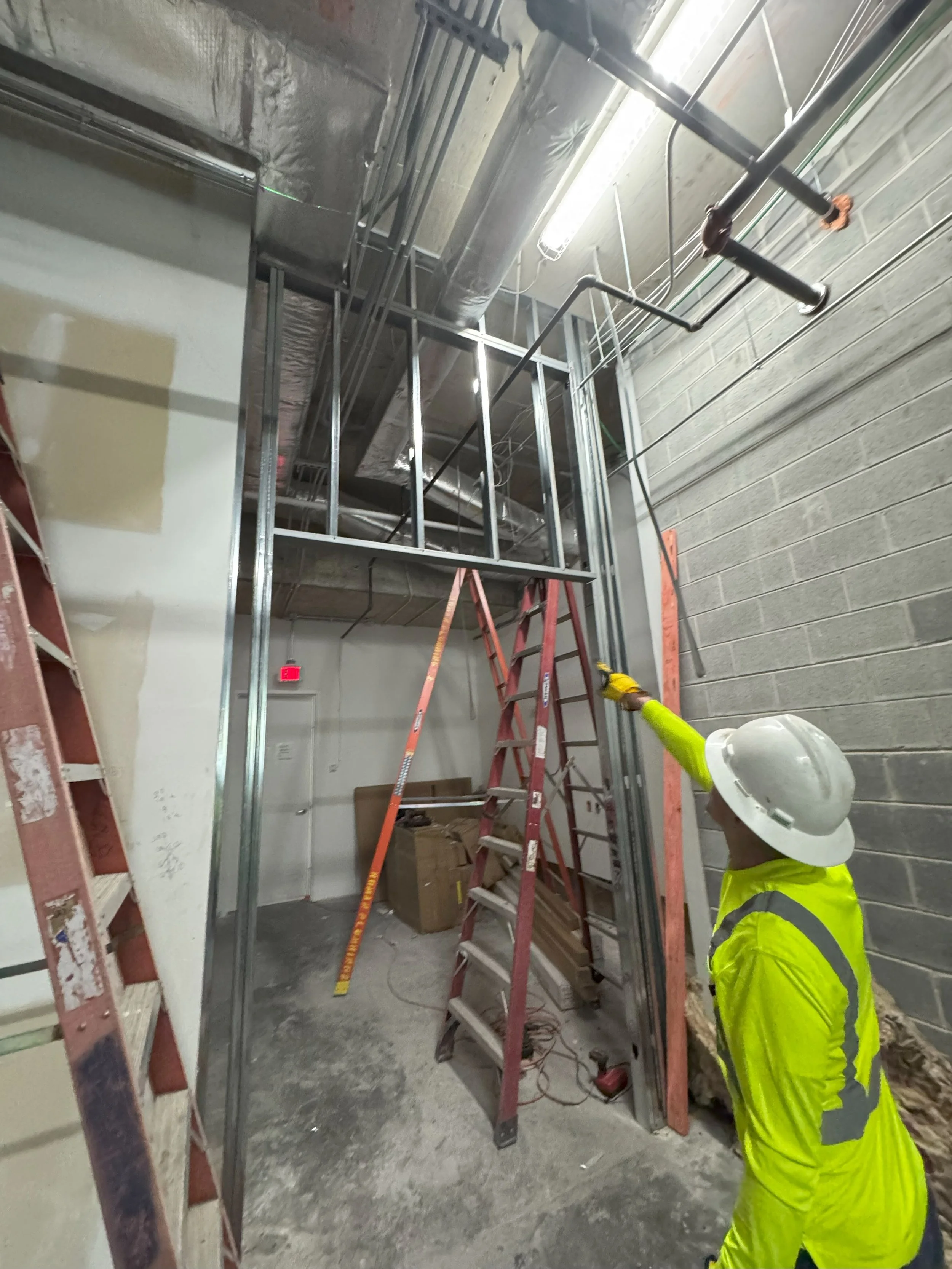 MJ Build LLC is currently performing this contract as subcontractor to BCI National Construction & Facilities. We are constructing all walls and ceiling bulkheads for this project. Our scope of services includes Metal framing, Blocking, Drywall hanging and finishing to level 4 finish.